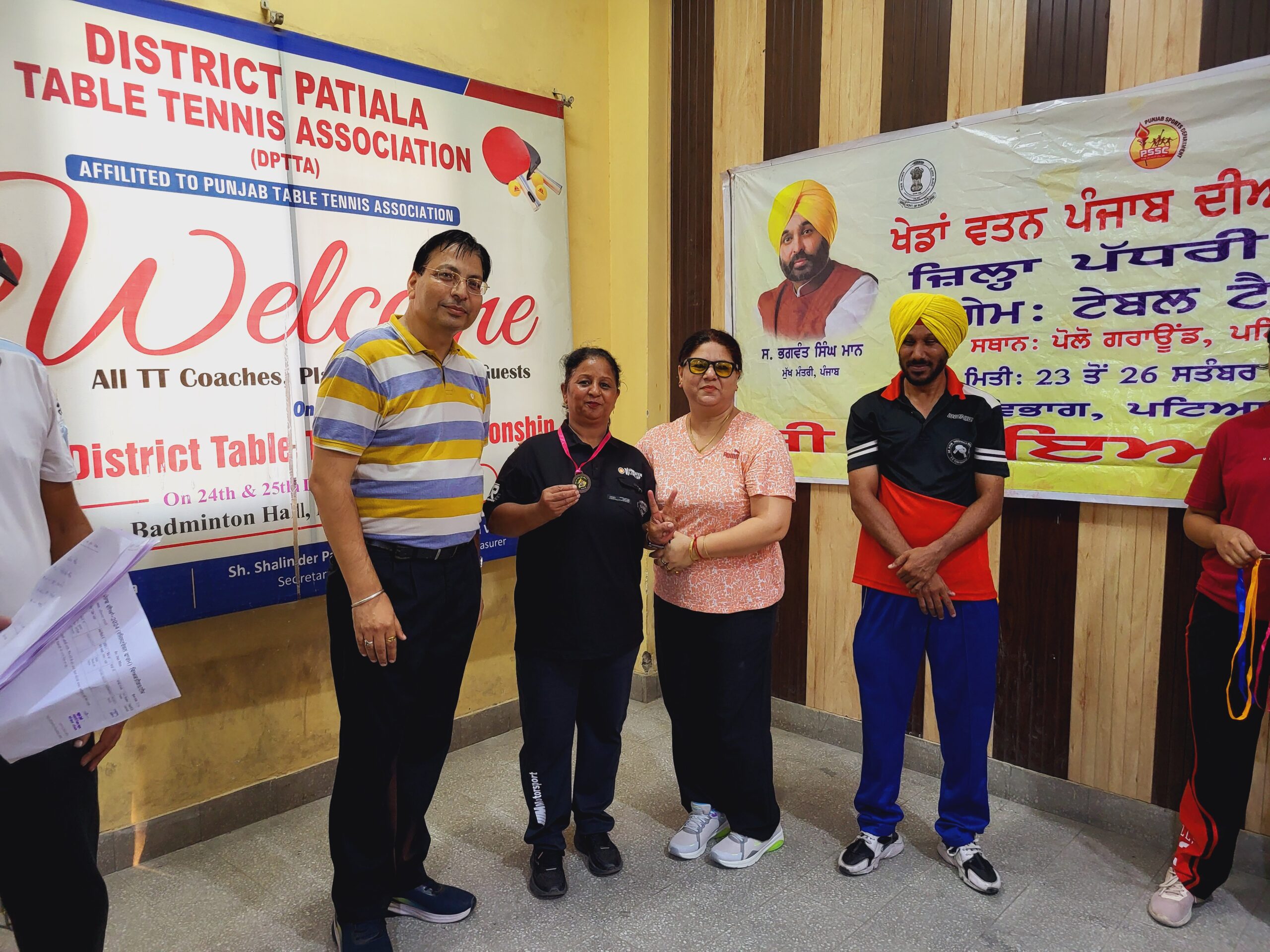 ਪਟਿਆਲਾ ( ਅਨੁਰਾਗ ਸ਼ਰਮਾ ) ਪੰਜਾਬ ਸਰਕਾਰ ਖੇਡਾਂ ਪ੍ਰਤੀ ਪੰਜਾਬ ਵਾਸੀਆਂ ਨੂੰ ਪ੍ਰੇਰਿਤ ਕਰਨ ਲਈ ਹਰ ਸਾਲ ਖੇਡਾਂ ਵਤਨ ਪੰਜਾਬ ਦੀਆਂ ਕਰਵਾਉਂਦੀ ਹੈ। ਪੰਜਾਬ ਸਰਕਾਰ ਦੇ ਦਿਸ਼ਾ ਨਿਰਦੇਸ਼ਾਂ ਅਨੁਸਾਰ ਅਤੇ ਜ਼ਿਲ੍ਹਾ ਖੇਡ ਅਫਸਰ ਪਟਿਆਲਾ ਸ੍ਰੀ ਹਰਪਿੰਦਰ ਸਿੰਘ ਜੀ ਦੀ ਅਗਵਾਈ ਵਿੱਚ ਖੇਡਾਂ ਵਤਨ ਪੰਜਾਬ ਦੀਆਂ-2024 ਦੇ ਜ਼ਿਲ੍ਹਾ ਪੱਧਰੀ ਟੂਰਨਾਮੈਂਟ ਕਰਵਾਏ ਗਏ। ਖੇਡਾਂ ਵਤਨ ਪੰਜਾਬ ਦੀਆਂ-2024 ਦਾ ਟੇਬਲ ਟੈਨਿਸ ਦਾ ਜ਼ਿਲ੍ਹਾ ਪੱਧਰੀ ਟੂਰਨਾਮੈਂਟ ਕਨਵੀਨਰ ਸ੍ਰੀ ਹਰਮਨਪ੍ਰੀਤ ਸਿੰਘ ਜੀ ਅਤੇ ਕੋ ਕਨਵੀਨਰ ਮੇਘਾ ਕੌਲ ਜੀ ਦੀ ਅਗਵਾਈ ਵਿੱਚ ਪੋਲੋ ਗਰਾਊਂਡ ਪਟਿਆਲਾ ਵਿਖੇ ਕਰਵਾਇਆ ਗਿਆ। ਜ਼ਿਲ੍ਹਾ ਪੱਧਰੀ ਟੇਬਲ ਟੈਨਿਸ ਟੂਰਨਾਮੈਂਟ ਪ੍ਰਤੀ ਖਿਡਾਰੀਆਂ ਵਿੱਚ ਬਹੁਤ ਉਤਸ਼ਾਹ ਸੀ।ਇਸ ਟੂਰਨਾਮੈਂਟ ਵਿੱਚ ਸ੍ਰੀਮਤੀ ਮਮਤਾ ਰਾਣੀ (ਪੀ.ਟੀ.ਆਈ., ਸ.ਮਿ.ਸ.ਖੇੜੀ ਗੁੱਜਰਾਂ, ਪਟਿਆਲਾ) ਨੇ 51 ਤੋਂ 60 ਸਾਲ ਉਮਰ ਵਰਗ ਵਿੱਚ ਕਾਂਸੀ ਦਾ ਤਗਮਾ ਹਾਸਲ ਕੀਤਾ। ਸ੍ਰੀਮਤੀ ਮਮਤਾ ਰਾਣੀ ਜੀ ਨੇ ਦੱਸਿਆ ਕਿ ਉਹਨਾਂ ਨੇ ਕਈ ਸਾਲਾਂ ਬਾਅਦ ਟੇਬਲ ਟੈਨਿਸ ਟੂਰਨਾਮੈਂਟ ਵਿੱਚ ਭਾਗ ਲਿਆ ਹੈ। ਸ੍ਰੀਮਤੀ ਮਮਤਾ ਰਾਣੀ ਜੀ ਨੇ ਕਿਹਾ ਕਿ ਜੇਕਰ ਅਸੀਂ ਕਿਸੀ ਵੀ ਖੇਡ ਵਿੱਚ ਮਿਹਨਤ ਕਰਦੇ ਹਾਂ ਤਾਂ ਸਫਲਤਾ ਜ਼ਰੂਰ ਮਿਲਦੀ ਹੈ। ਸ੍ਰੀਮਤੀ ਮਮਤਾ ਰਾਣੀ ਜੀ ਨੇ ਕਿਹਾ ਕਿ ਉਹਨਾਂ ਦੀ ਉਮਰ 53 ਸਾਲ ਹੋ ਗਈ ਹੈ ਪਰ ਖੇਡਾਂ ਪ੍ਰਤੀ ਉਹਨਾਂ ਦੇ ਉਤਸ਼ਾਹ ਵਿੱਚ ਕੋਈ ਕਮੀ ਨਹੀਂ ਆਈ ਹੈ। ਸ੍ਰੀਮਤੀ ਮਮਤਾ ਰਾਣੀ ਜੀ ਨੇ ਕਿਹਾ ਕਿ ਉਹਨਾਂ ਤੋਂ ਪ੍ਰੇਰਿਤ ਹੋ ਕੇ ਉਹਨਾਂ ਦੇ ਸਕੂਲ ਦੇ ਬੱਚੇ ਵੀ ਵੱਡੀ ਗਿਣਤੀ ਵਿੱਚ ਹਰ ਸਾਲ ਖੇਡਾਂ ਵਿੱਚ ਭਾਗ ਲੈਂਦੇ ਹਨ। ਸ੍ਰੀਮਤੀ ਮਮਤਾ ਰਾਣੀ ਜੀ ਨੇ ਕਿਹਾ ਕਿ ਇਹ ਖੇਡਾਂ ਸਰਕਾਰ ਦਾ ਬਹੁਤ ਵਧੀਆ ਉਪਰਾਲਾ ਹੈ ਕਿਉਕਿ ਖੇਡਾਂ ਮਨੁੱਖ ਦੇ ਸਰਵਪੱਖੀ ਵਿਕਾਸ ਵਿੱਚ ਅਹਿਮ ਭੁਮਿਕਾ ਨਿਭਾਉਂਦੀਆਂ ਹਨ। ਇਸ ਟੂਰਨਾਮੈਂਟ ਮੌਕੇ ਸ੍ਰੀ ਮਨਪ੍ਰੀਤ ਸਿੰਘ, ਸ੍ਰੀ ਰਵਨੀਤ ਸਿੰਘ ਢੀਂਡਸਾ, ਸ੍ਰੀਮਤੀ ਰੁਪਿੰਦਰ ਕੌਰ, ਸ੍ਰੀਮਤੀ ਕੁਲਦੀਪ ਕੌਰ, ਸ੍ਰੀਮਤੀ ਮੀਨਾ ਸੂਦ, ਸ੍ਰੀ ਦੀਪਇੰਦਰ ਸਿੰਘ ਅਤੇ ਹੋਰ ਅਧਿਆਪਕ ਮੌਜੂਦ ਸਨ।